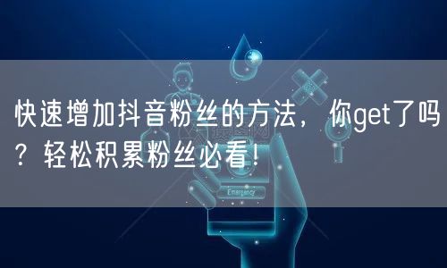 通过本文介绍的这些方法,你可以轻松地在抖音上增加粉丝数量。记住,坚持努力、持续学习和不断改进是关键。希望这些方法对你有所帮助,让你成为抖音达人!